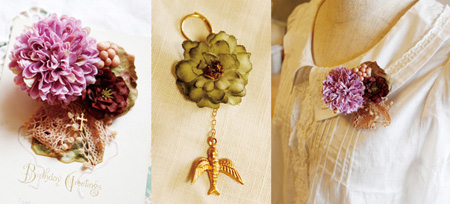「お花+手編みレースのコサージュとお花の指輪」