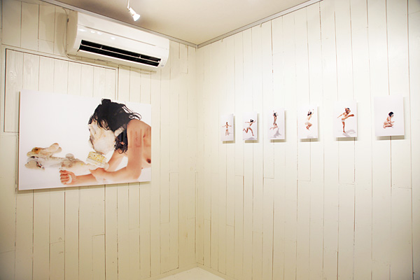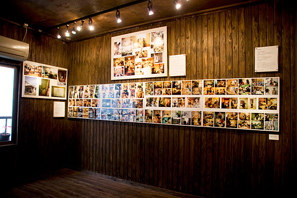 1階は白色の木で作られた展示スペースとなっています。(写真は「センチメンタル・サラリーマンズ」の展示風景。)